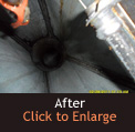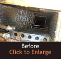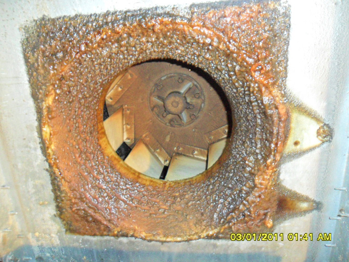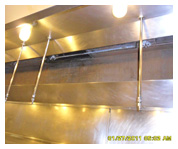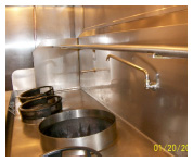 - All hoods, flues and fans are pre-scraped and a generous amount of our degreasing solution is applied to all surfaces and allowed to soak. High pressure hot water (250’ @ 1500psi) is applied for solution and grease removal.